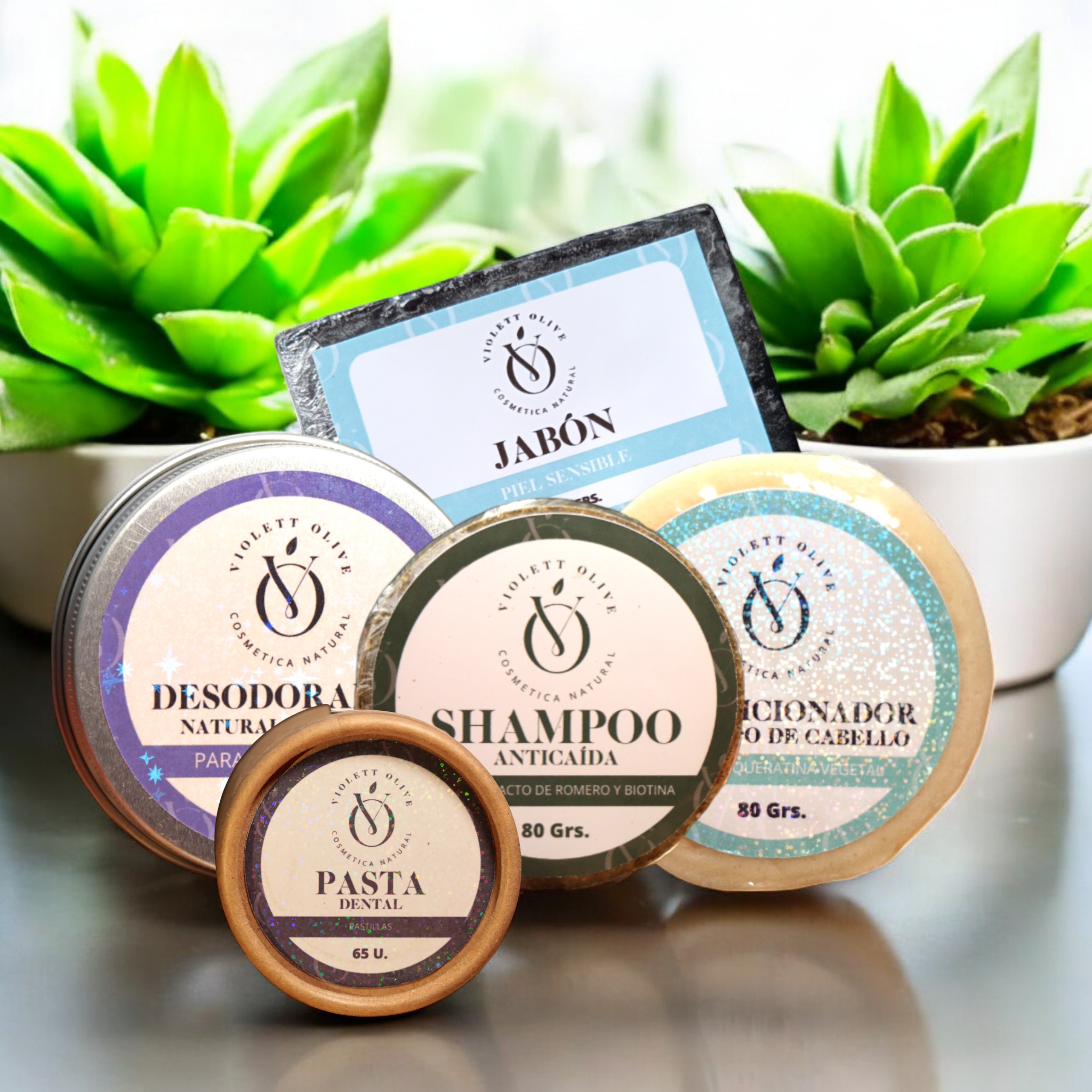 Incluye shampoo y acondicionador sólido (a elección), jabón, desodorante y pasta dental. Higiene completa, natural y suave para pieles sensibles, 100% vegano y biodegradable.